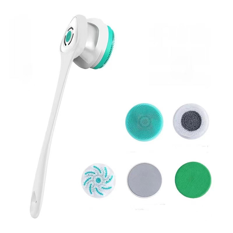 5-in-1 Electric Shower Brush Set for Whole Body Cleaning & Vibrating Massage - Detachable Long Handle & Exfoliating Silicone Brush!