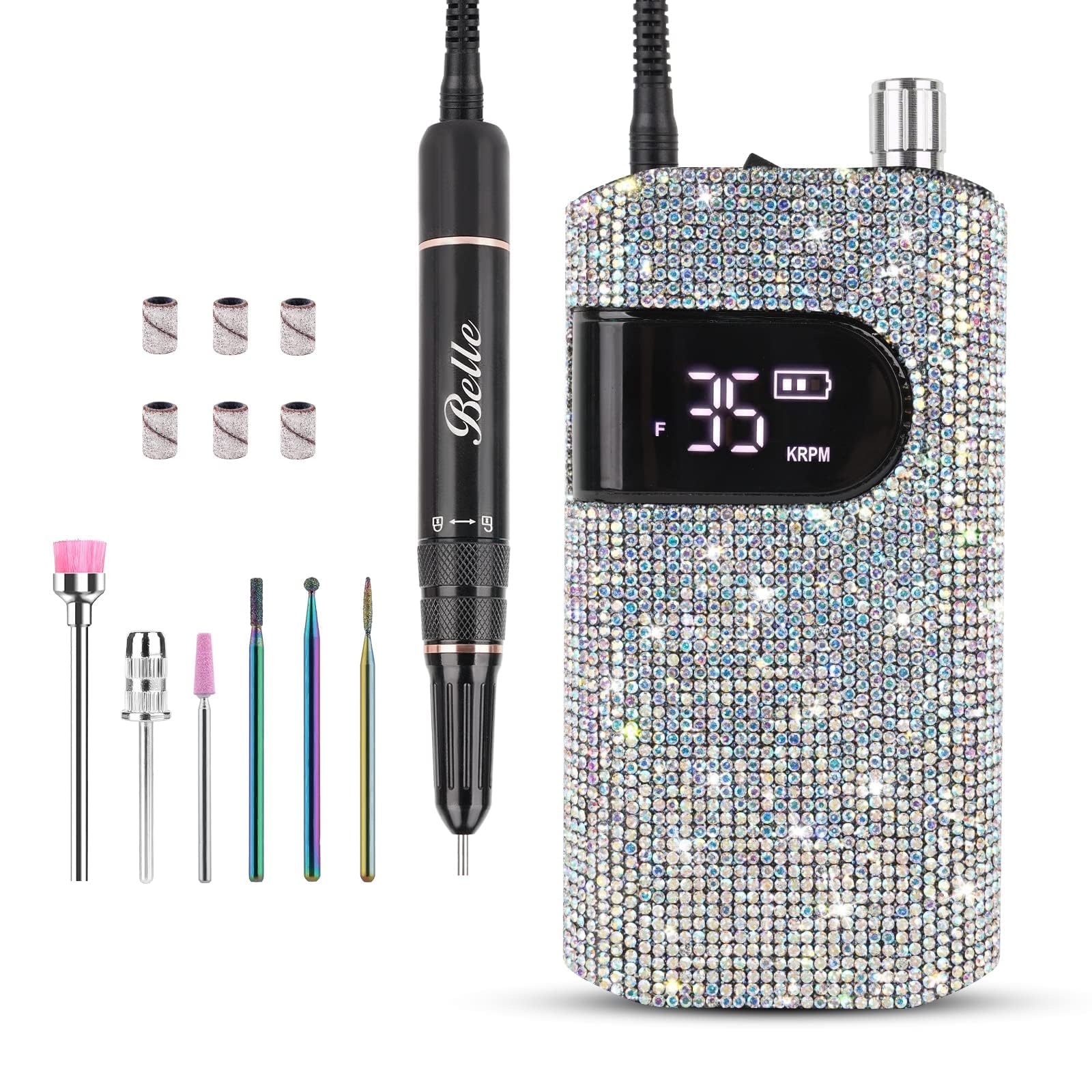 Belle Professional Nail Drill Machine, Sparkly Electric Nail File for Acrylic Nails, Cordless Portable Nail Drill Kit with Drill Bits & Sanding Bands, Manicure Pedicure Tools for Home and Salon