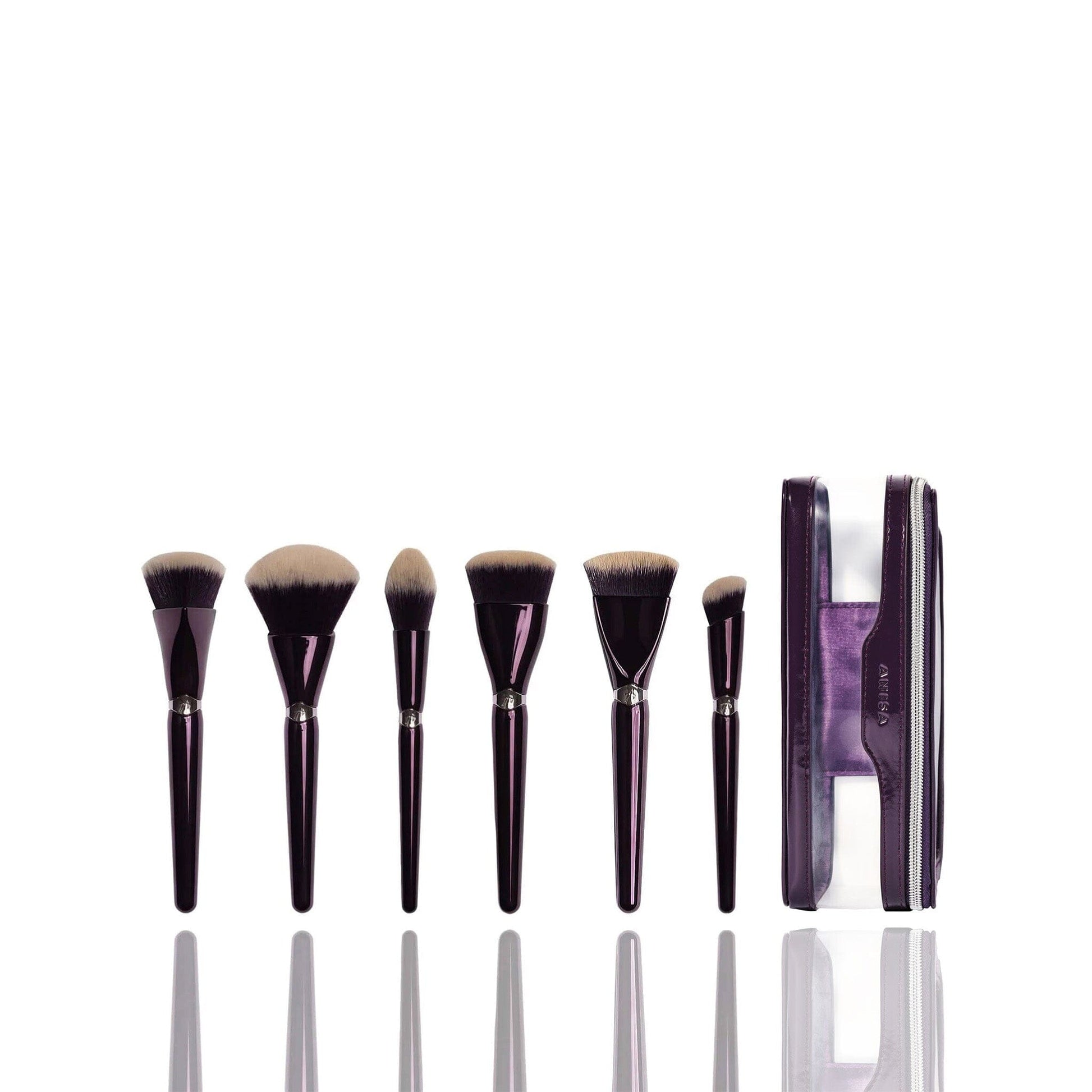 The set includes our Pinnacle Foundation Brush, Multi-Powder Brush, Angled Concealer Brush, Buffing Bronzer Brush, Crescent Contour Brush, Tapered Highlight Brush, and The Beauty Case.