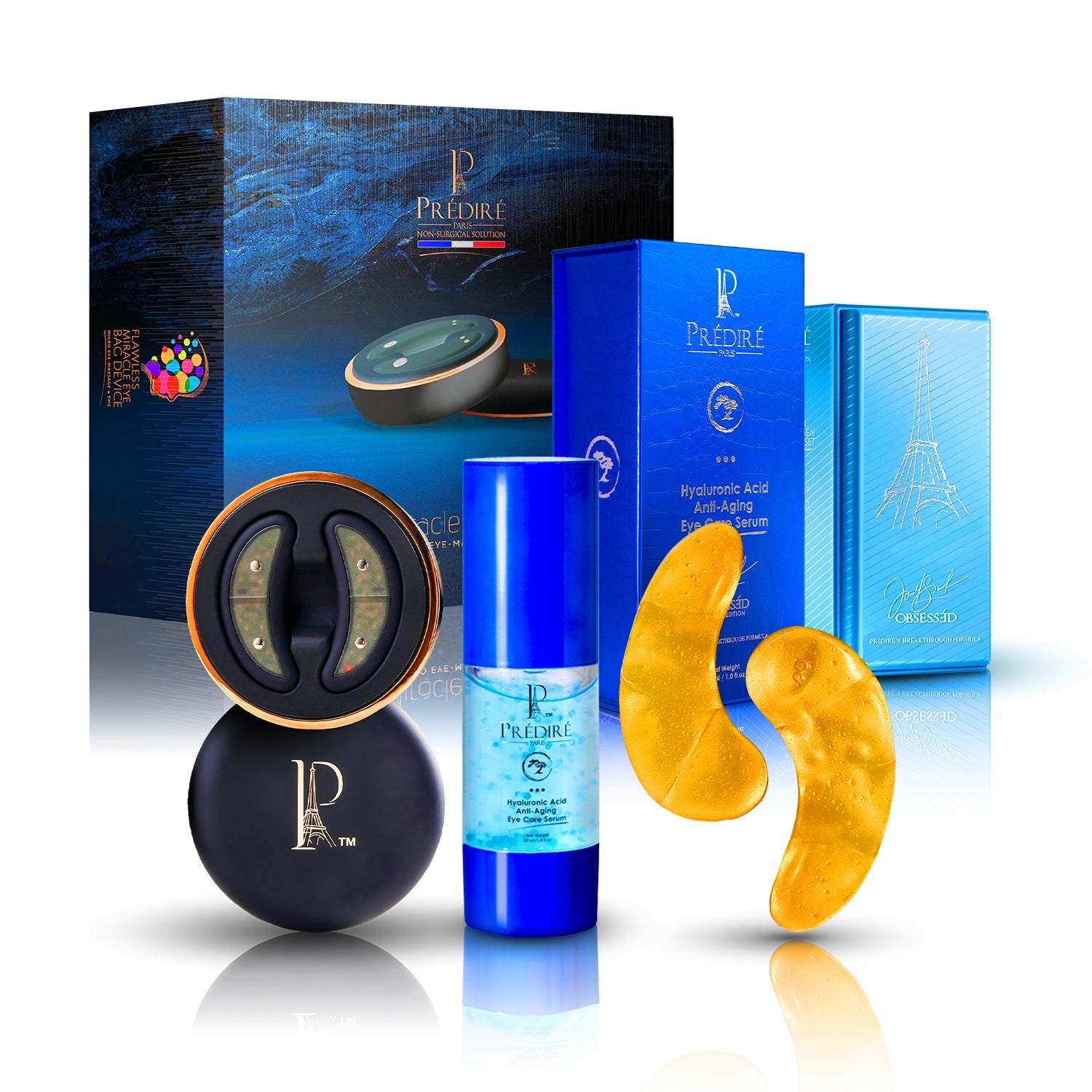 The Eye Perfection Trio is your comprehensive solution for targeting and transforming the delicate under-eye area, combining state-of-the-art technology with potent skincare formulations. The centerpiece, Prédiré Paris's Flawless Miracle Eye Bag Device, harnesses EMS and vibration to stimulate the skin, encouraging collagen production and reducing the appearance of eye bags and wrinkles for a smoother, more youthful look. Complementing this device, the 12-In-1 Collagen Cell Renewal & Oxygen Undereye Mask Set includes 12 pairs of masks, each infused with collagen and oxygenating ingredients to revitalize and refresh the under-eye area, diminishing signs of tiredness and aging. The set is completed with the Hyaluronic Acid Anti-Aging Eye Care Serum, a deeply hydrating formula that plumps and firms the skin, further smoothing fine lines and crow's feet. Together, these three components offer a holistic approach to eye care, ensuring your eyes look brighter, more rested, and visibly rejuvenated, reflecting the true beauty and vitality of your spirit.