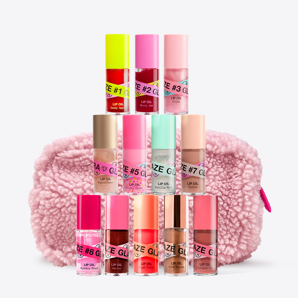 Our viral Lip Glaze Vault now includes ALL 12 of our best-selling lip oils for a juicy, plump pout. Now with a FREE Makeup Bag for a limited time.