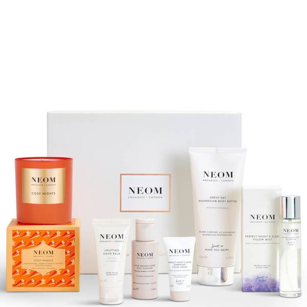 Bundle includes: Super Shower Power Cleanser 50ml, Uplifting Hand Balm 30ml, Great Day Magnesium Body Butter 200ml, Cosy Nights 1 Wick Candle 185g, Perfect Night's Sleep Overnight Facial Cream 10ml, Perfect Night's Sleep Pillow Mist 30ml
