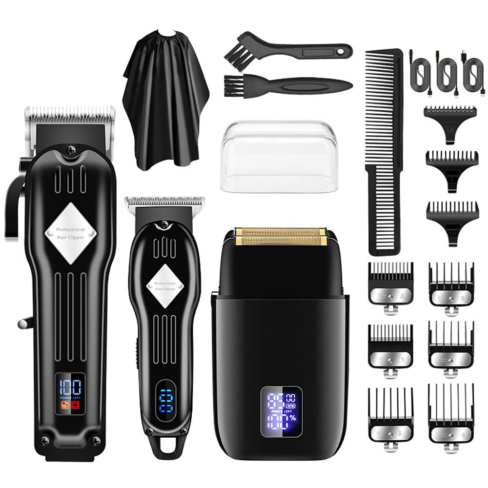 - Professional Grooming Kit: Roziapro clipper set includes large T-blade hair clippers, small cordless trimmer and foil shaver. The large clipper can be used to trim thick hair. The compact precision trimmer with zero clearance makes it easy to trim beards, hair and sideburns with its compact and portable design. The foil shaver can be used to trim beards and sideburns without irritating hair, creating a comfortable for a relaxing shave.