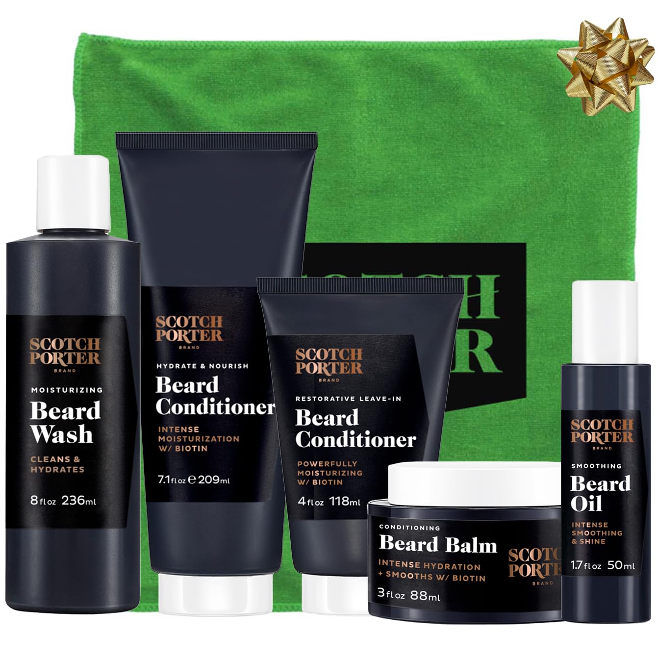 Scotch Porter Get Bearded Collection | Includes Beard Wash, Conditioner, Balm, Serum, Microfiber Towel | Free of Parabens, Sulfates & Silicones | Vegan