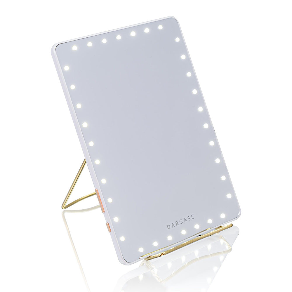 This super slim mirror has an ergonomic design with contoured edges so it’s pleasing to hold and comes with an adjustable stand. The rose gold brightness buttons can adjust the mirror to three different brightness levels, allowing you to create the ideal makeup lighting setup anywhere and at any moment – even on those travel days when doing your beauty routine seems impossible.