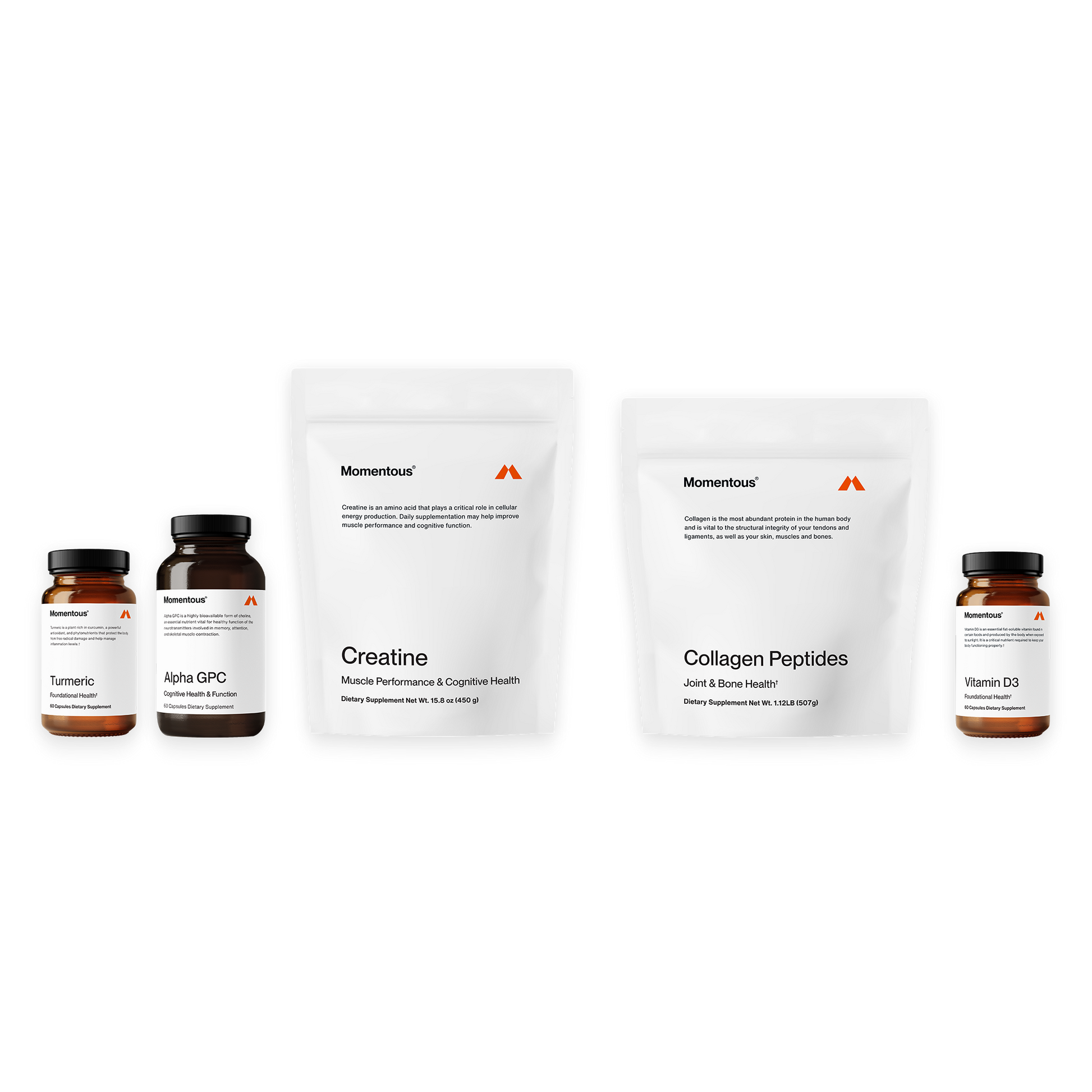 The Peri & Post Menopause Support Bundle is a thoughtfully curated blend of Creatine, Turmeric, Collagen Peptides, Alpha GPC, and Vitamin D3, each tailored to fortify and rejuvenate women during these critical life stages. The Peri & Post Menopause Support Bundle was designed with Dr. Stacy Sims and addresses the specific challenges of peri and post menopause: collagen and creatine depletion, inflammation, and mood shifts. Creatine and Collagen can help to bolster bone and joint health, while Turmeric and Vitamin D3 can help modulate inflammation. Alpha GPC, a cognitive enhancer, can help sharpen the mind, helping you maintain focus and clarity throughout your day. Dive deep into rejuvenation with our research-driven ensemble and rediscover a radiant self even as life transitions.