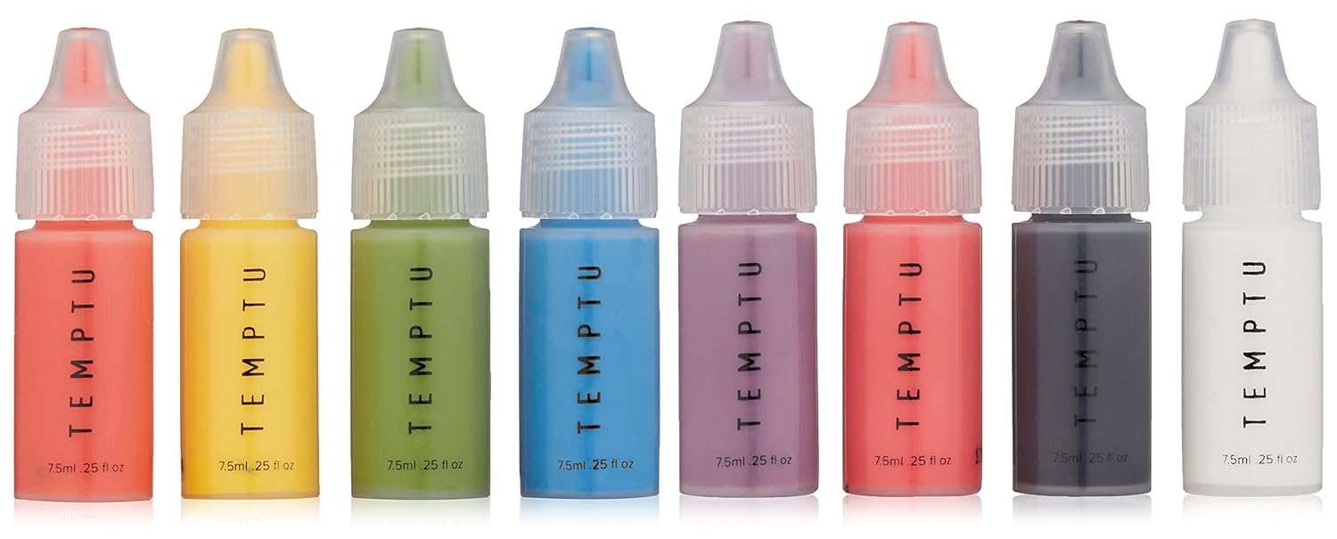 TEMPTU S/B Silicone-Based Hi-Definition Starter Set: Highly-Pigmented, Lightweight & Long-Lasting Vibrant Shades For Face & Body, Create Bold, Fantasy Looks, Oil-Free, 0.25 Fl Oz (Pack of 8)