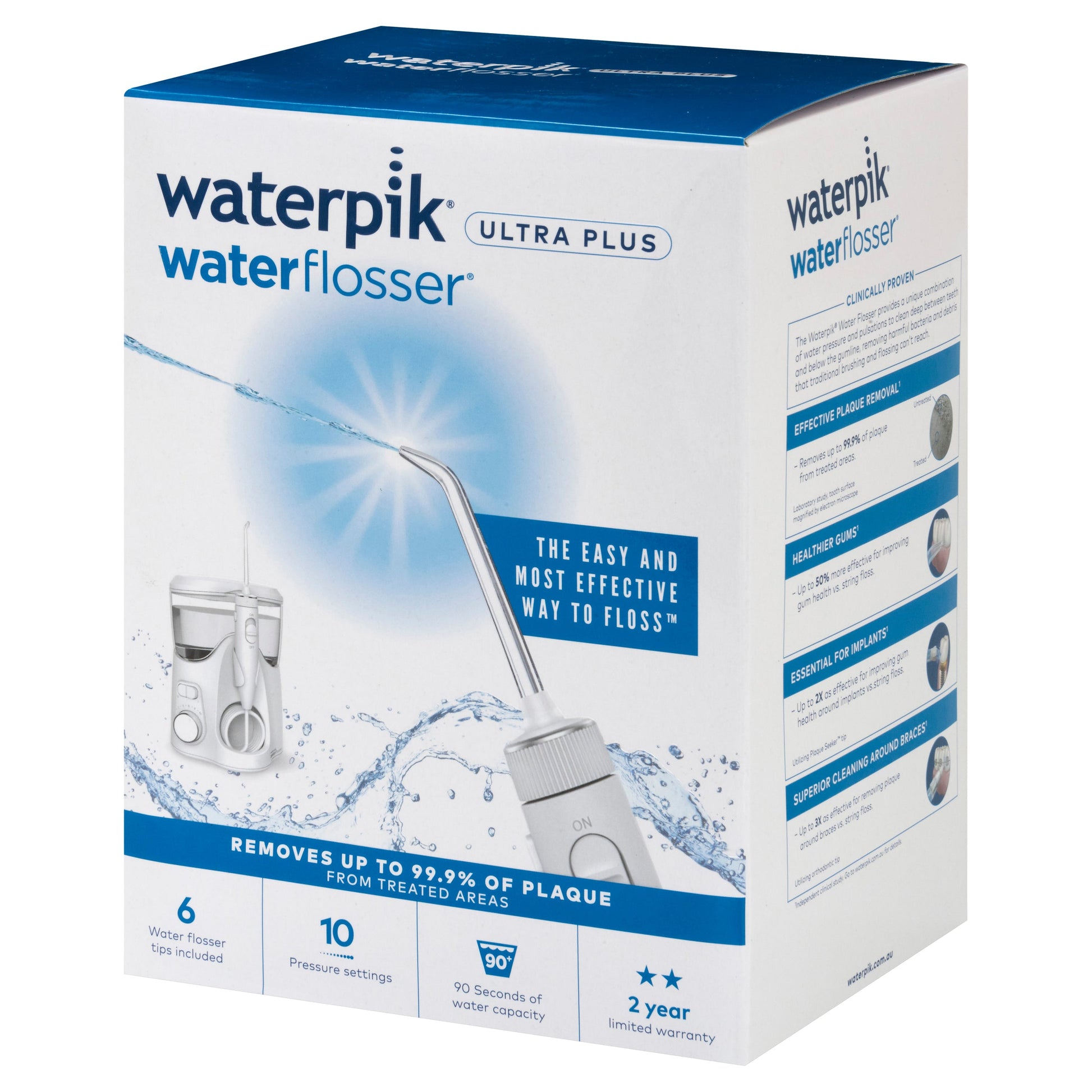 The Waterpik® Ultra Plus Water Flosser is The Easy and More Effective Way to Floss!™ It features state-of-the-art water flossing technology and provides the ultimate in performance.The Waterpik® Ultra Plus Water Flosser includes ten pressure settings, a contemporary design that is smaller and quieter than previous models, a covered reservoir with in-lid tip storage, and six unique tips.